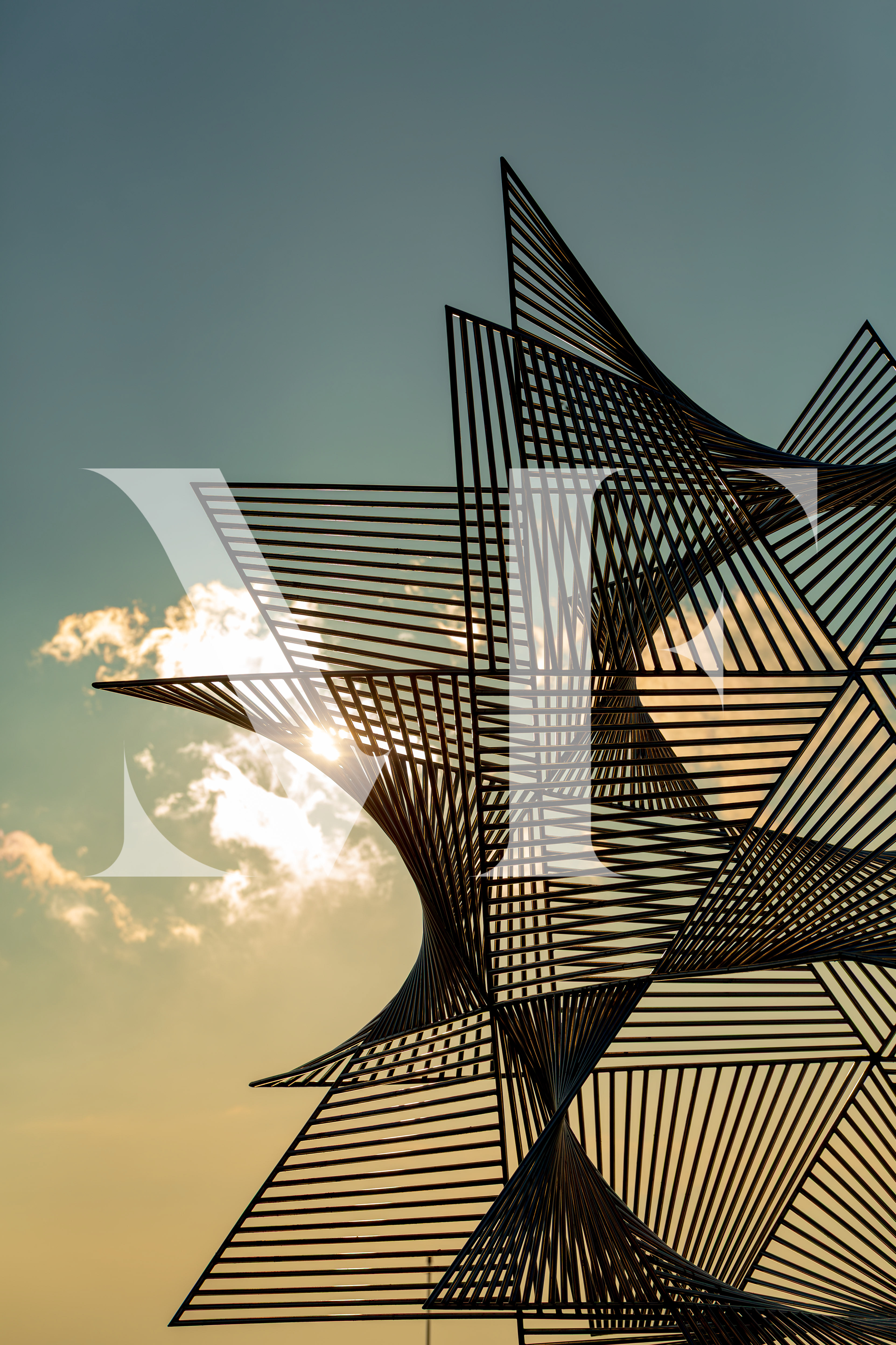 Des lignes noires s’entrelacent et s’élèvent dans le ciel, comme une architecture en apesanteur.