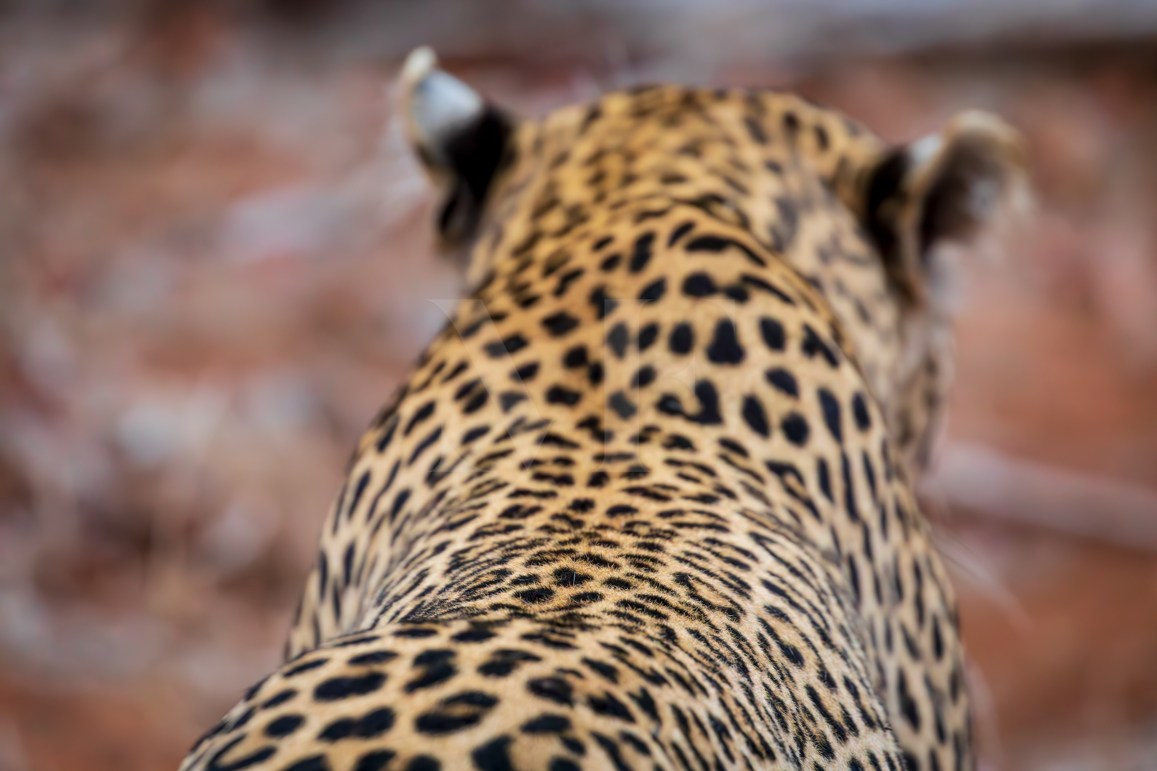 Au plus près du sol, le regard suit la ligne du dos tacheté d’un léopard en mouvement.