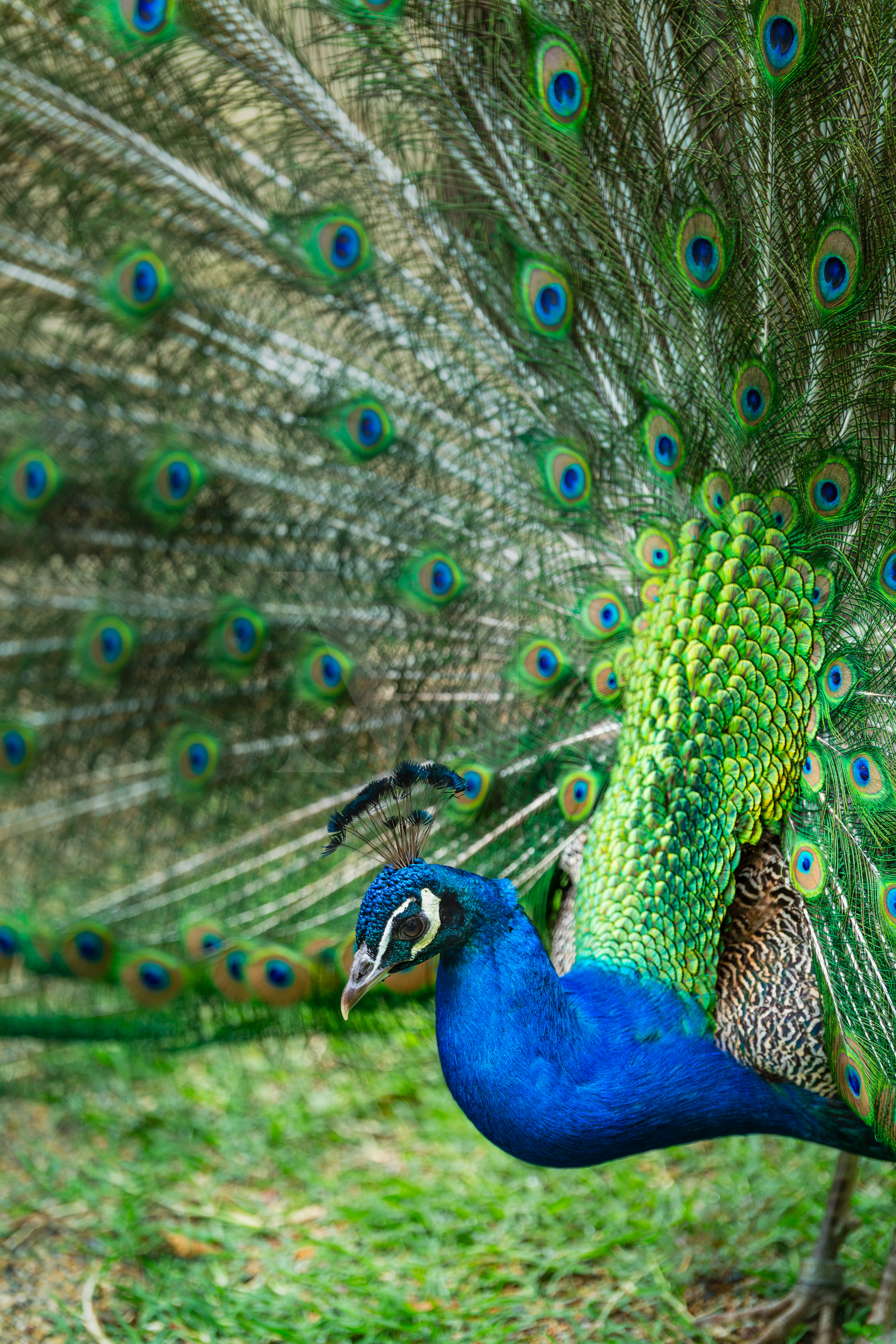 In a burst of vivid colors, this peacock unfolds its majestic train like a living masterpiece.