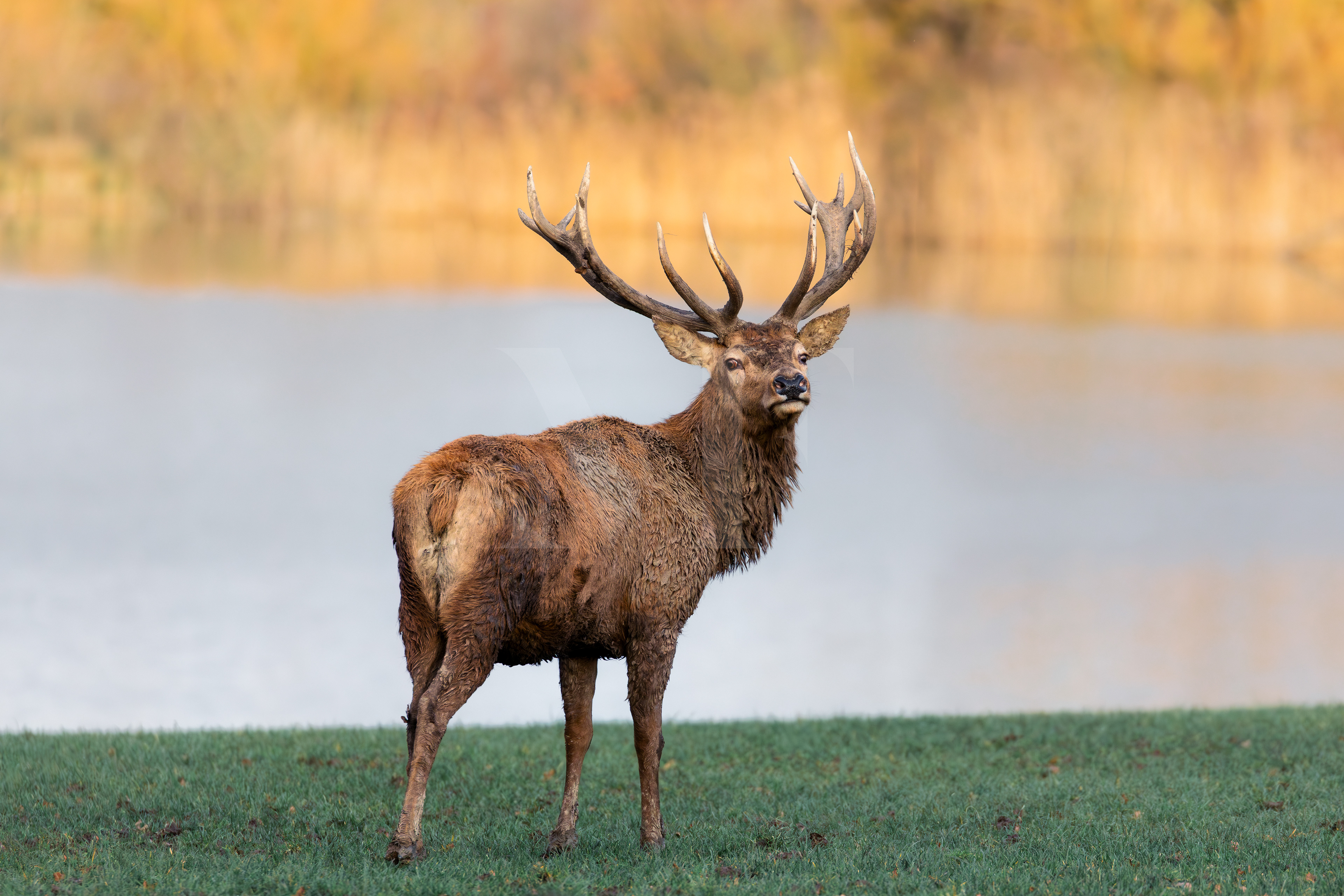Standing still by the water, this stag commands attention with raw elegance.
